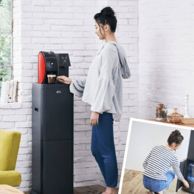 「ネスカフェ ゴールドブレンド バリスタ50[Fifty]」を搭載しており、冷水・温水に加えて、コーヒーメニューを1台で楽しむことができます。