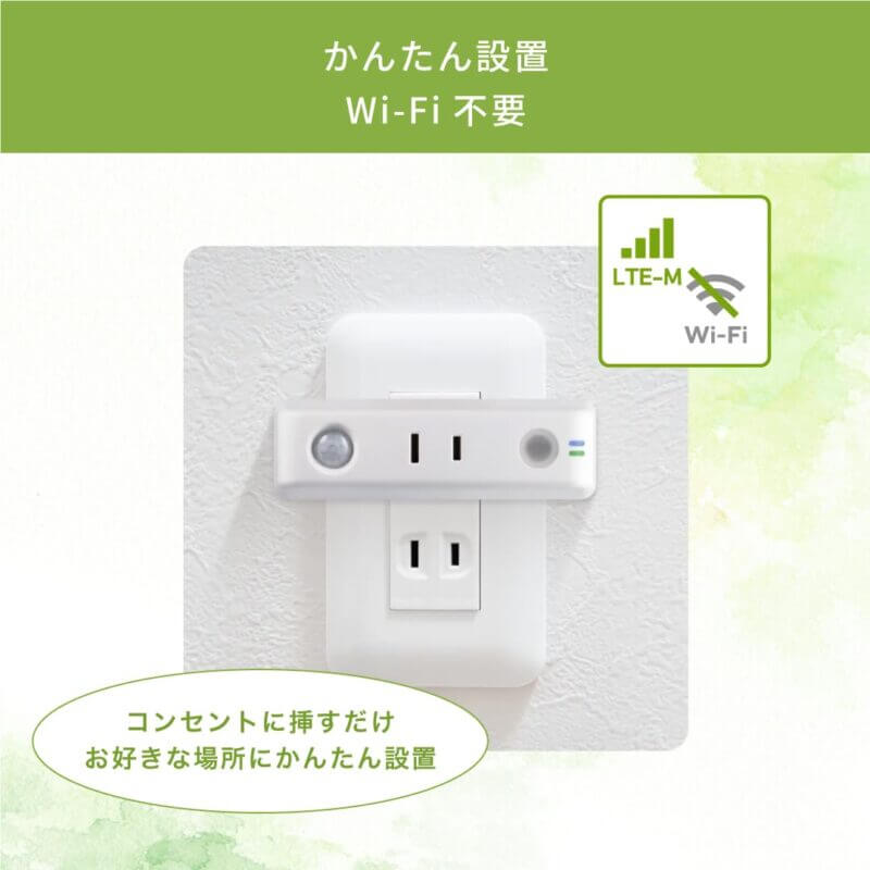 カメラではなく、センサー検知でプライバシーに配慮しつつ見守り、Wi-Fi環境が無くてもコンセントに挿すだけの手軽さが魅力です。