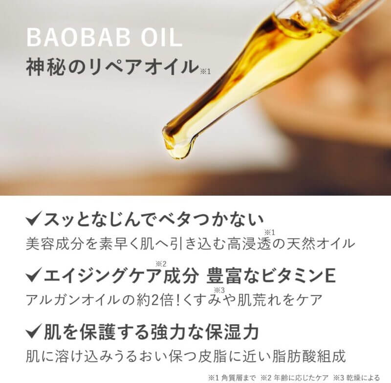 バオバブオイルはテクスチャーが軽く、肌になじみやすい点が特長です。