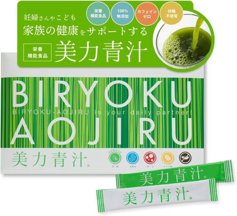 100%無添加品質、カフェインゼロ、天然葉酸、乳酸菌など等、健康を支える成分がぎゅっと詰まったこの青汁は、栄養バランスを気にする方の心強い味方。
