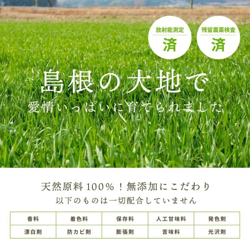 美力青汁は、保存料・着色料・香料・人工甘味料などの添加物を一切使用していない100%無添加品質の青汁。