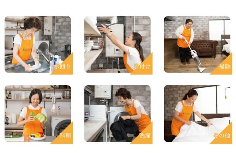 洗濯や掃除、料理はもちろん、ベッドメイクやクリーニングの受け渡し、植物の水やりなども代行してもらえて便利。
