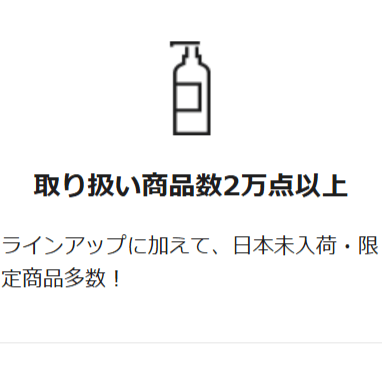 日本未発売の商品や限定アイテムも豊富に揃い、すべて正規品となっています。