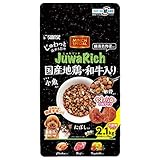 マルカン ドッグフード じゅわリッチ 国産地鶏・和牛入りは、独自の製法でじゅわっと旨味が出るように作られているドッグフードです。