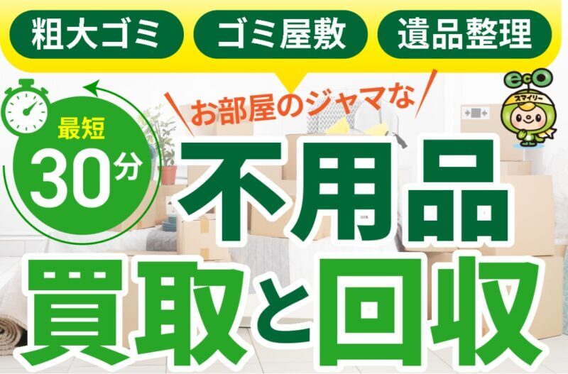エコスマイリーは、関東圏(東京・埼玉・千葉・神奈川)を中心に展開する中古品買取・不用品回収サービス。
