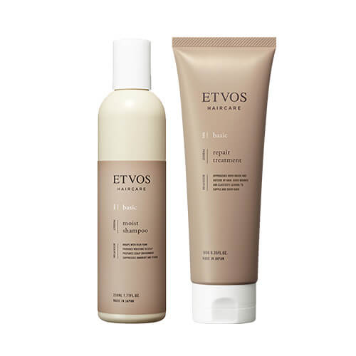 エトヴォス モイストシャンプー&リペアトリートメントセットは乾燥やうねりが出やすい髪質にうるおいを与えて、しっとりまとまりやすく整える設計。