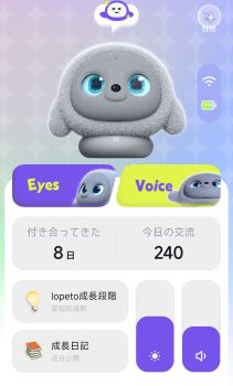 lopetoは大きな瞳が特徴の、進化する感情成長型AIロボットです。