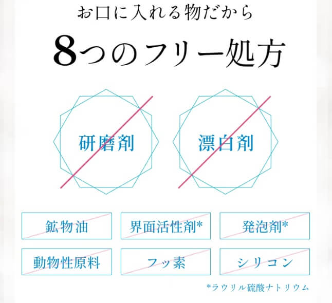 さらに一般的な歯磨き粉に含まれる刺激成分ラウリル硫酸ナトリウム、ハイドロキシアパタイトも無配合で、敏感な歯にもやさしく使いやすいのが特徴です。