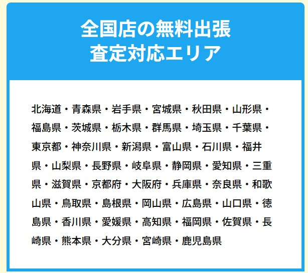 また、買取方法が出張のみである点も、対面が苦手な方は躊躇してしまいそうです。