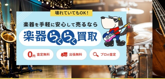 楽器らくらく買取は、「会員登録不要・最短30分で出張」が魅力の、沖縄除く全国対応の楽器専門買取サービス。