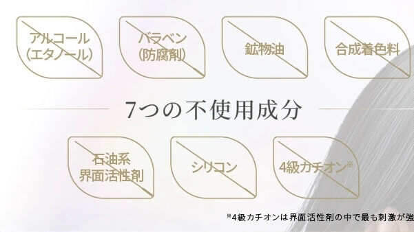 7つの無添加処方で、お肌に優しい成分が使われています。