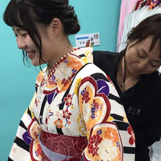 着物選びから着付けまでの時間も楽しいひとときになるよう、心を込めた接客で対応。