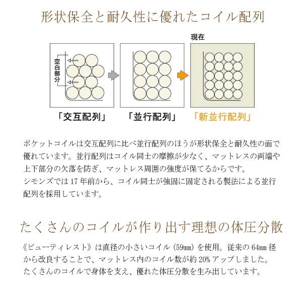 シモンズ ベッドは、たくさんのコイルによって、理想的な体圧分散を実現させています。