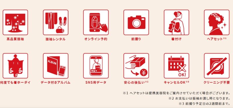 また「ふりホ」同様に着付け込みプランやアルバム制作プランも必要に応じて選べます。