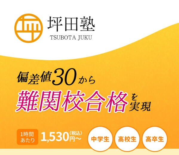 坪田塾のオンラインコースは、小学生~大学受験・浪人生まで対応。