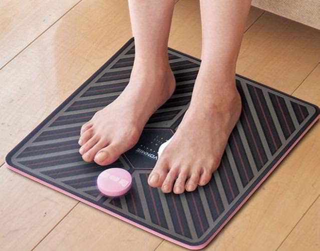 ボミーは足を乗せるだけで電気刺激することができ、脚やせに効果的。